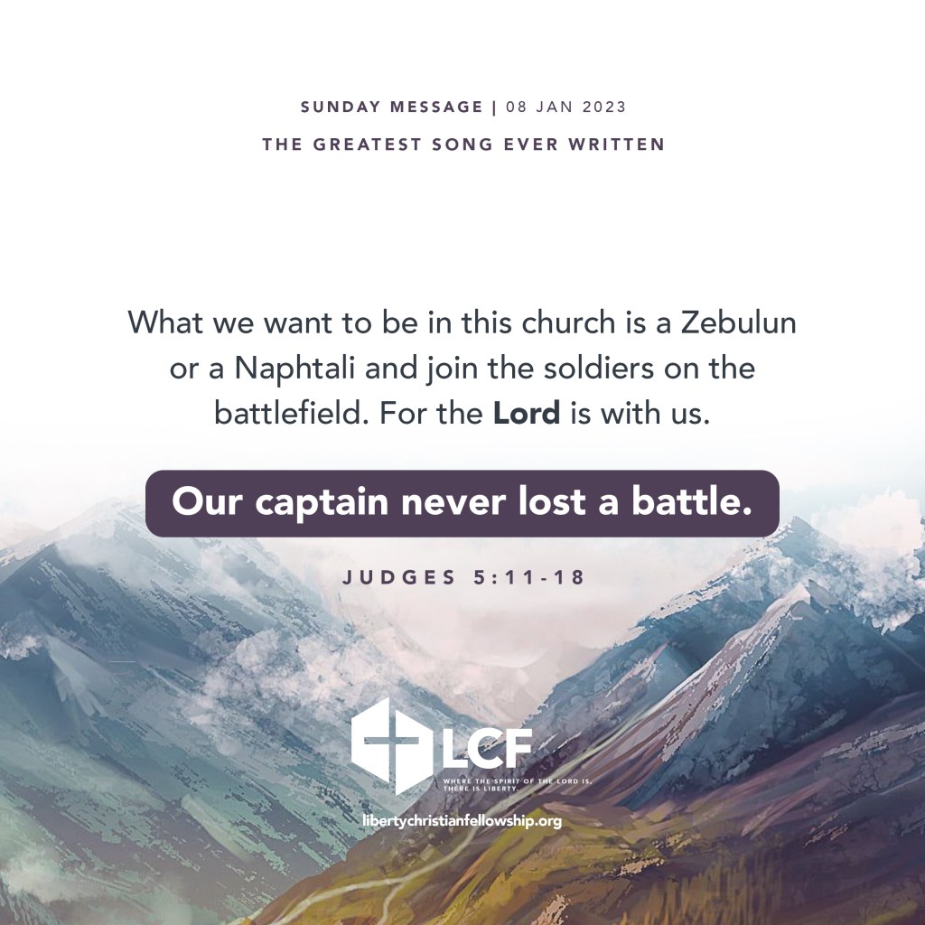 Sunday Service | 08 January 2023 Posted byLiberty Christian FellowshipJanuary 8, 2023January 8, 2023Posted inUncategorized The Greatest Song Ever Written read Judges 5:11-18 Related