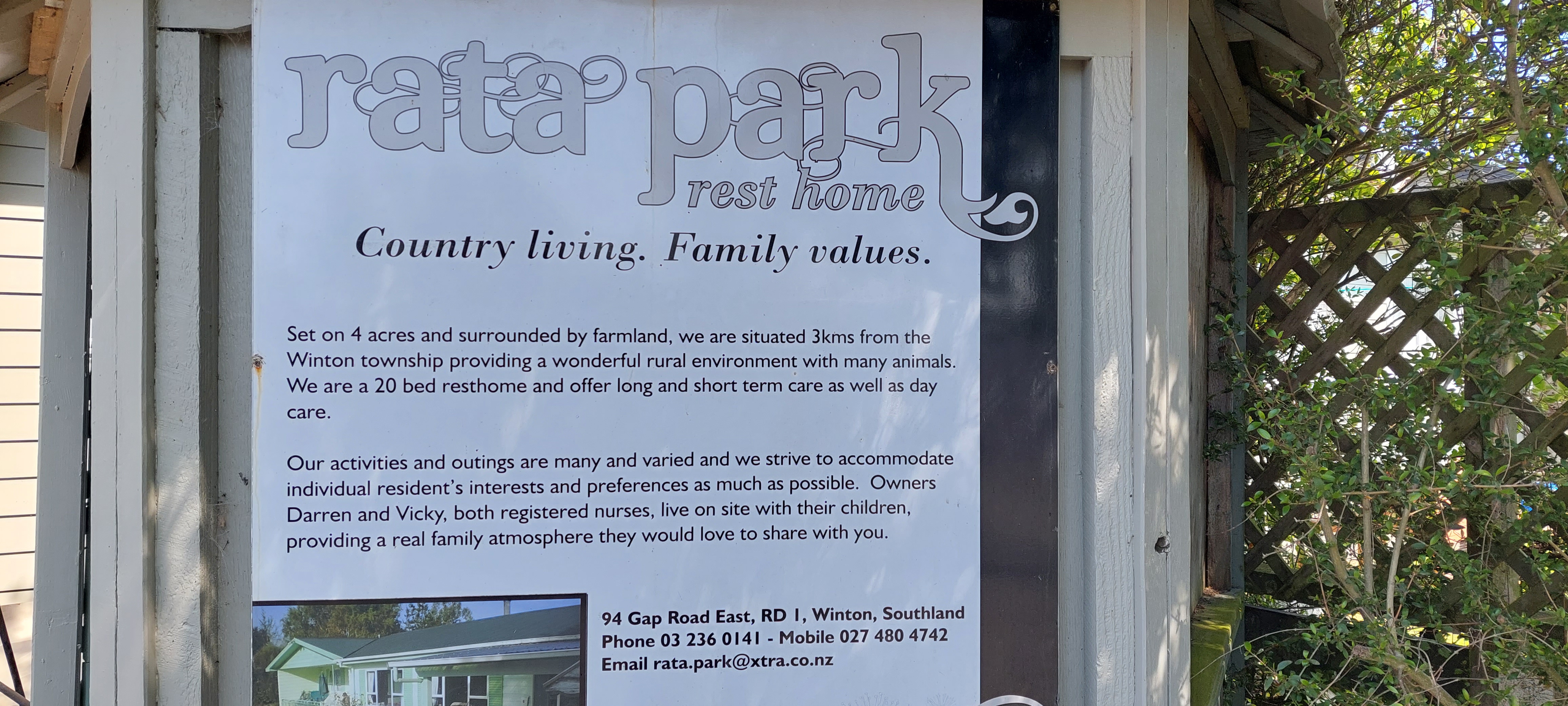 Outreach to Rata Park Rest Home in Winton every second Saturday 1:30pm